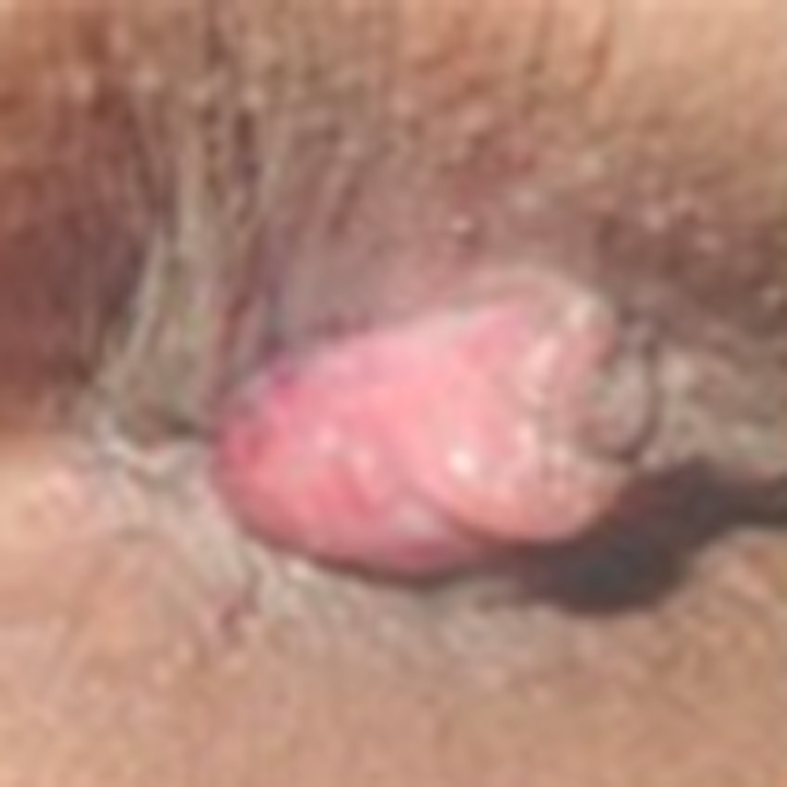 结缔组织型外痔:肛门缘皮肤皱襞变大,肛门口出现可以摸到的肉球肉团。 查看图片